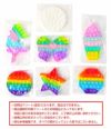 星やリボン、アイスクリームやユニコーンなど、カラフルでいろんな形のかわいいプッシュポップです。
