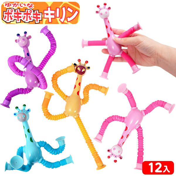 【子供会・縁日の大人気景品】カラフルなキリンの手足をポキポキ曲げて、自由自在にポーズが作れる、縁日おもちゃです。