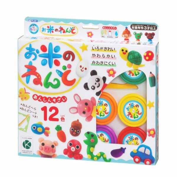 カラフルな12色セット☆お米が主原料で作った安心素材のねんどです。色がきれいで、やわらかく、乾きにくい特徴のねんどでいろつくろってみよう!