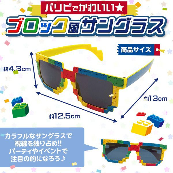他の画像を見る 1個装あたり122円(約134.2円税込)x12個装入=1464円(1610円税込)カラフルな縁取りデザインのサングラスでLET'S PARTY!! ブロック グラス 12個装入 { 景品玩具 メガネ サングラス パーティーグッズ おもしろい }{ 景品 おもちゃ 詰め合わせ お祭り 夏祭り 縁日 問屋 大量 配布 イベント パーティー 子供 子供会 幼稚園 }258[25C13][dmo] メーカー希望小売価格 オープン価格 のところ 当店特別価格 ¥ 1,610 税込 在庫切れ 再入荷お知らせ お気に入りに登録する