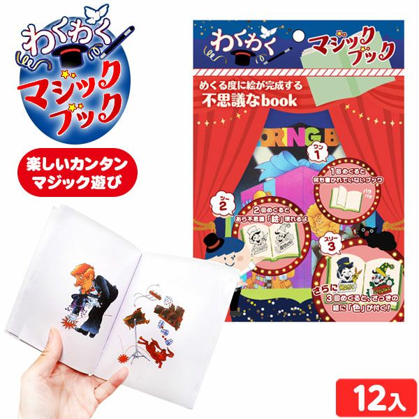 他の画像を見る 1個装あたり100円(110円税込)x12個装入=1200円(1320円税込)めくる度に絵が変化する!不思議なマジックブック わくわく マジックブック 12個装入 { 景品玩具 マジック ジョークグッズ 絵が変わる 本 }{ 景品 おもちゃ 詰め合わせ 夏祭り 縁日 問屋 子供 子供会 自治会 お子様ランチ 大量 保育園 幼稚園 イベント 配布 }217[25B24] メーカー希望小売価格 オープン価格 のところ 当店特別価格 ¥ 1,320 税込 在庫切れ 再入荷お知らせ お気に入りに登録する