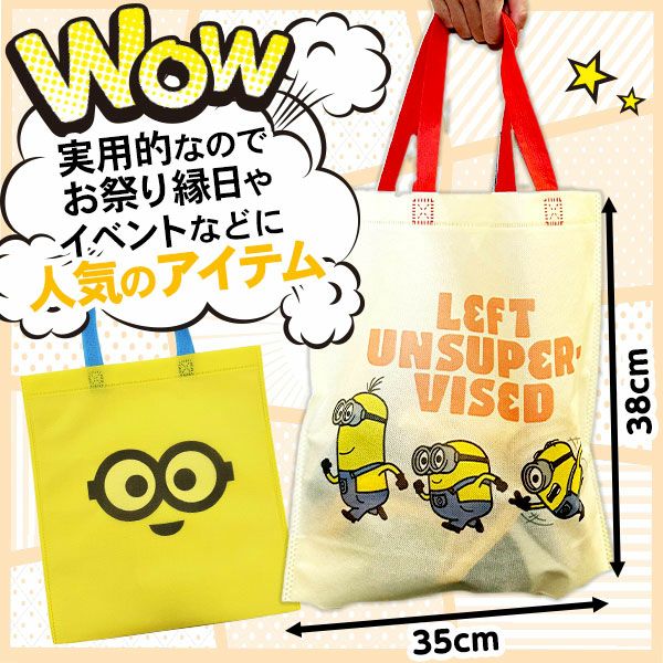 他の画像を見る 1個あたり92円(約101.2円税込)x12個入=1104円(1214円税込)子供会さんからの人気度高め! ミニオンズ 不織布 トートバック 12個入 { 景品玩具 サブバッグ バッグ ミニオン }{ 景品 おもちゃ 詰め合わせ お祭り 縁日 問屋 子供 子供会 祭 お子様ランチ 小学生 イベント 配布 }258[24G01] メーカー希望小売価格 オープン価格 のところ 当店特別価格 ¥ 1,214 税込 カートに入れる お気に入りに登録する