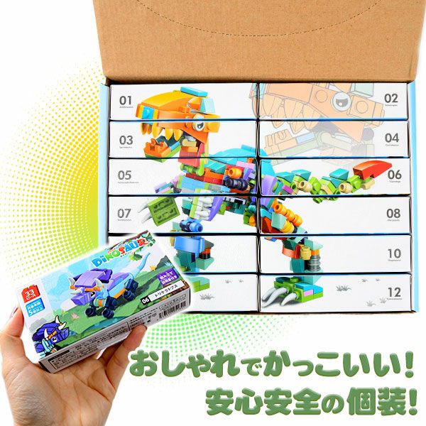 他の画像を見る 単価75円(82.5円税込)x12個装入=900円(990円税込)全種類集めるともっと楽しい♪ブロックコレクション ブロックコレクションダイナソー 12個装入 { 景品玩具 ブロック おすすめ 恐竜 ダイナソー 工作 親子 体験 夏休み 男の子 女の子 脳トレ }{ 景品 おもちゃ 詰め合わせ お祭り 縁日 問屋 子供 子供会 大量 まとめ買い 保育園 幼稚園 パーティー イベント 配布 }238[24D23] メーカー希望小売価格 オープン価格 のところ 当店特別価格 ¥ 990 税込 カートに入れる お気に入りに登録する