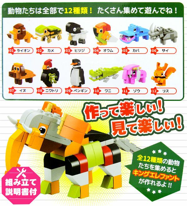 他の画像を見る 単価75円(82.5円税込)x12個装入=900円(990円税込)全種類集めるともっと楽しい♪ブロックコレクション ブロックコレクション アニマルズ 12個装入 { 景品玩具 ブロック おすすめ 動物園 動物 工作 親子 体験 夏休み 男の子 女の子 脳トレ }{ 景品 おもちゃ 詰め合わせ お祭り 縁日 問屋 子供 子供会 祭 大量 まとめ買い 保育園 幼稚園 パーティー イベント 配布 }238[24D27] メーカー希望小売価格 オープン価格 のところ 当店特別価格 ¥ 990 税込 カートに入れる お気に入りに登録する