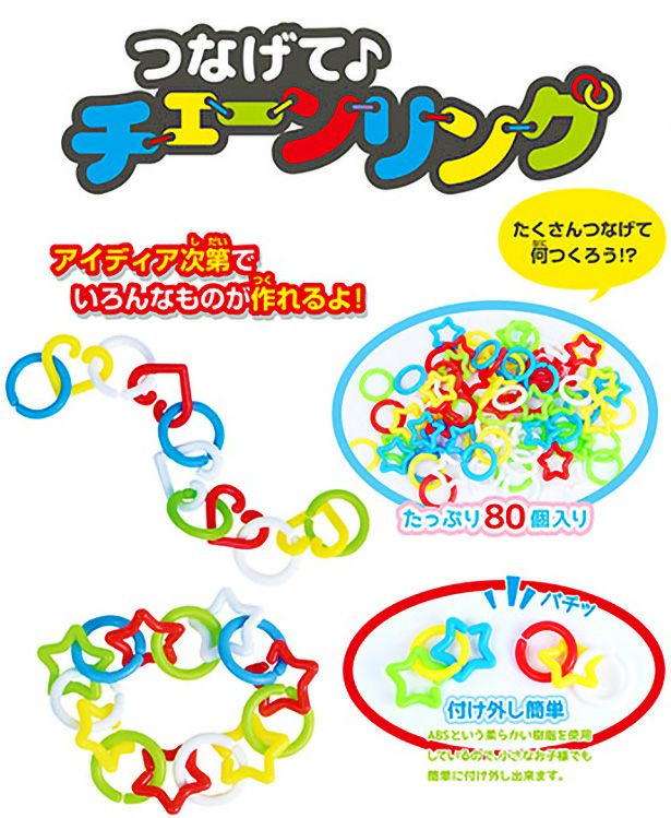 他の画像を見る 1個あたり80円(88円税込)x12個入=960円(1056円税込)色んなカタチのリングをつなげて遊べる! つなげてチェーンリング 12個入 { 景品玩具 知育玩具 チェーン リング 輪っか 工作 組み合わせ }{ 子供会 景品 お祭り くじ引き 縁日 お子様ランチ おもちゃ }246[25C08] メーカー希望小売価格 オープン価格 のところ 当店特別価格 ¥ 1,056 税込 カートに入れる お気に入りに登録する