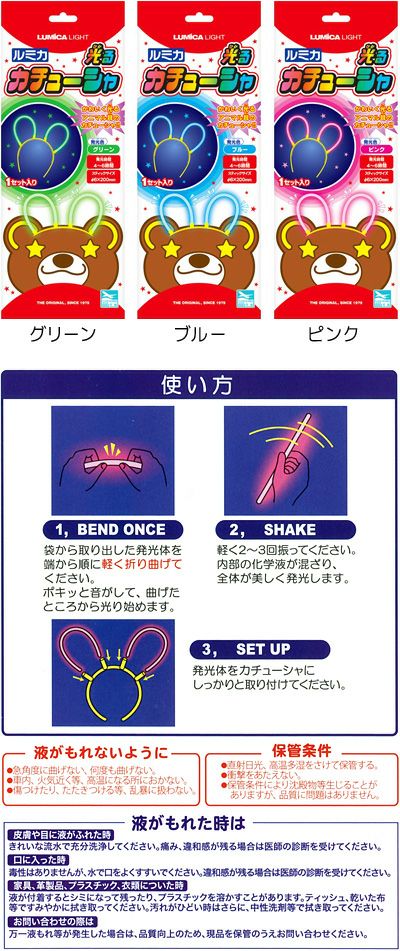 他の画像を見る 約32%OFF!!国内最高品質発光体ルミカ ルミカライト ケミカルライト ルミカ 光るルミカカチューシャ 全3色 { ルミカ ルミカライト ケミカルライト サイリューム }{ 子供会 景品 お祭り くじ引き 縁日 お子様ランチ エレクトリックラン 光るおもちゃ }[25H14][dmo] メーカー希望小売価格 ¥ 198 のところ 当店特別価格 ¥ 135 税込 カートに入れる お気に入りに登録する