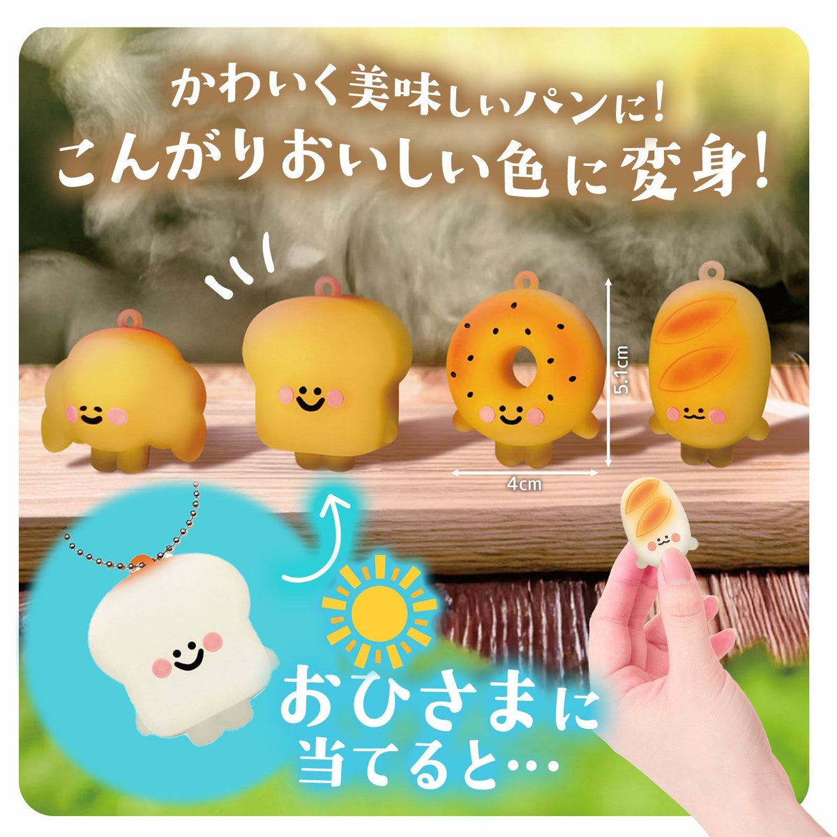 他の画像を見る 1個装あたり80円(88円税込)x12個装入=960円(1056円税込)おいしい日光浴でこんがり色に大変身♪ おひさまやきたてパン 12個装入 { 景品玩具 おひさま 日光 こんがり 色が変わる パン かわいい キーホルダー }{ 景品 おもちゃ 詰め合わせ 夏祭り 縁日 問屋 子供 子供会 自治会 祭 お子様ランチ 大量 保育園 幼稚園 イベント 配布 }238[25I01] メーカー希望小売価格 オープン価格 のところ 当店特別価格 ¥ 1,056 税込 カートに入れる お気に入りに登録する