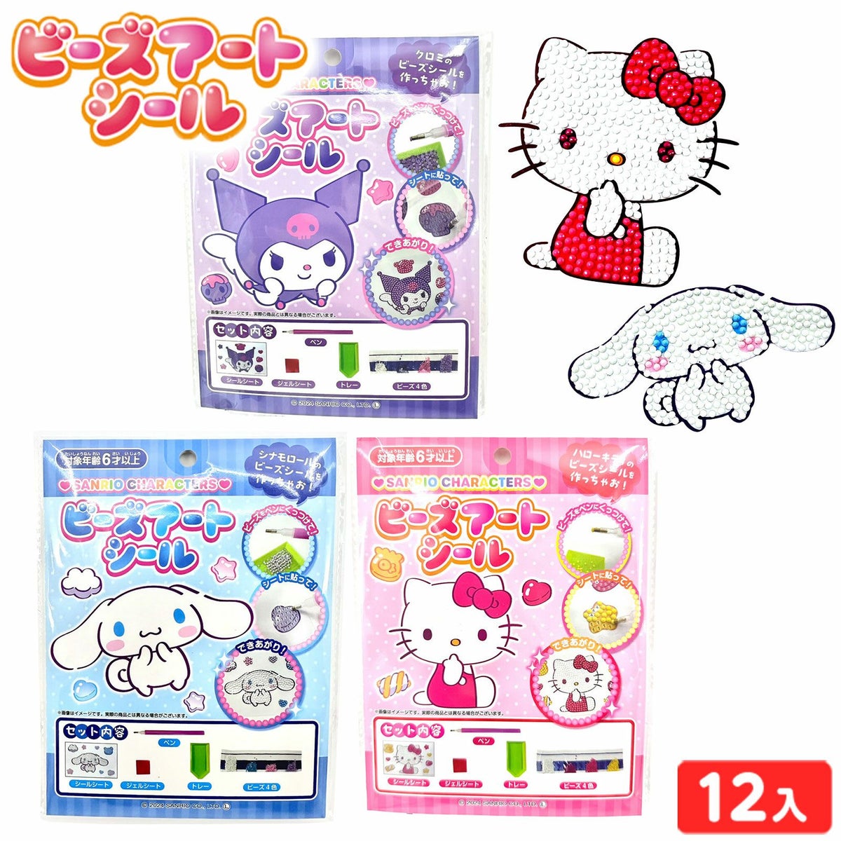 他の画像を見る 1個装あたり100円(110円税込)x12個装入=1200円(1320円税込)楽しく簡単デコレーション!サンリオのクラフトアート サンリオキャラクターズ ビーズアートシール 12個装入 { 景品玩具 サンリオ ビーズ シール 工作 立体シール ハンドクラフト かわいい 女の子 }{ 景品 おもちゃ 夏祭り 縁日 問屋 子供 ギフト プレゼント }227[25I01] メーカー希望小売価格 オープン価格 のところ 当店特別価格 ¥ 1,320 税込 カートに入れる お気に入りに登録する
