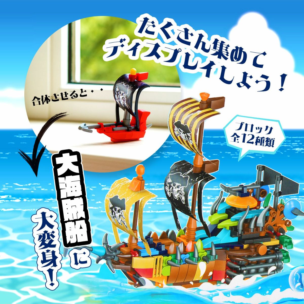他の画像を見る 1個装あたり84円(約92.4円税込)x12個装入=1008円(1109円税込)ブロック全12種類を合体させると・・・大きな作品が作れる! ブロックシリーズ 海賊船 12種 12個装入 { 景品玩具 ブロック 組立 知育 パイレーツ }{ 景品 おもちゃ 詰め合わせ お祭り 夏祭り 縁日 問屋 子供 子供会 自治会 祭 大量 保育園 幼稚園 パーティー イベント 配布 }234[25F09] メーカー希望小売価格 ¥ 1,584 のところ 当店特別価格 ¥ 1,109 税込 在庫切れ 再入荷お知らせ お気に入りに登録する