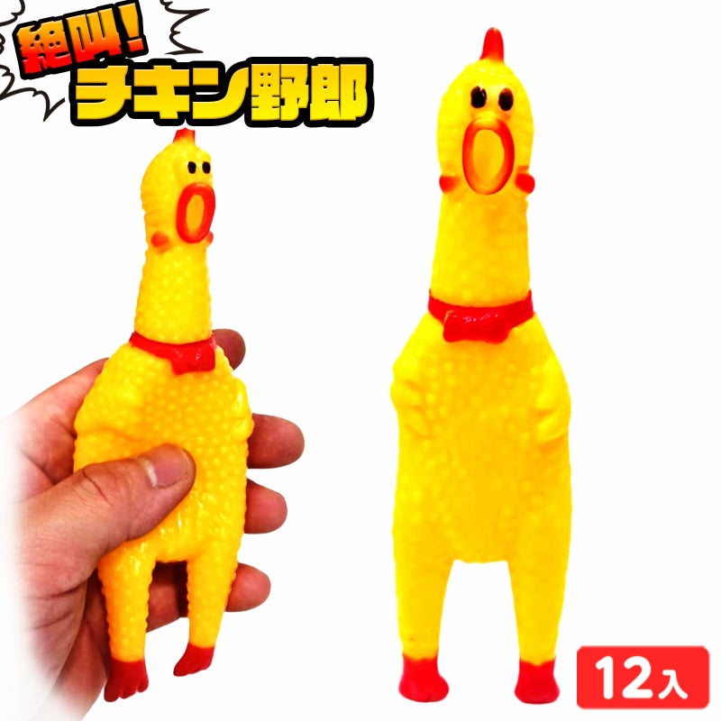 チキン野郎が大絶叫!お腹を握って愉快な鳴き声を出すチキンです。