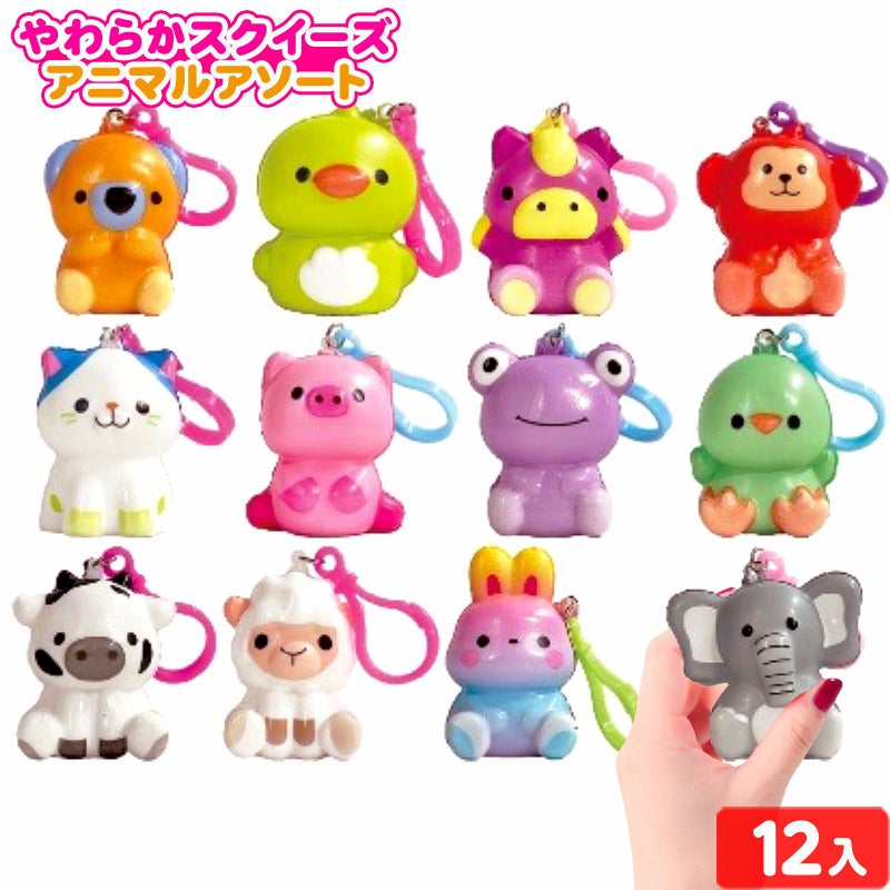 どうぶつスクイーズ☆うさぎやカエル、ゾウやさるなどアニマルモチーフのやわらかスクイーズキーホルダーです。