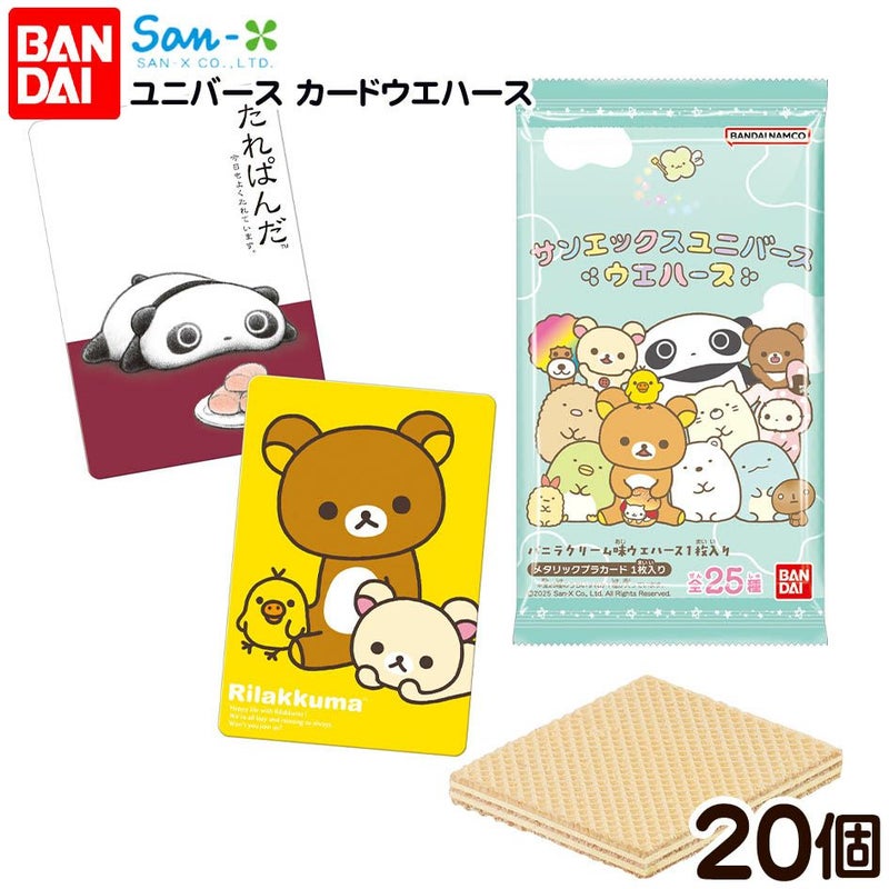 サンエックスユニバースより、カード付きウエハースが登場!リラックマ、すみっコぐらしなどの人気キャラクターやたれぱんだ、アフロ犬など長く愛されるキャラクターまで全25種のラインナップ!