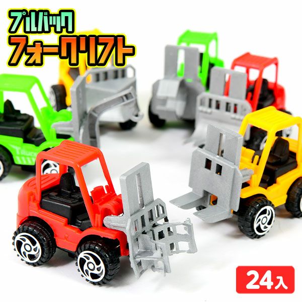 プルバックで走行するフォークリフトのミニカーです。前面のリフトパーツは上下に可動するので楽しさが広がります☆