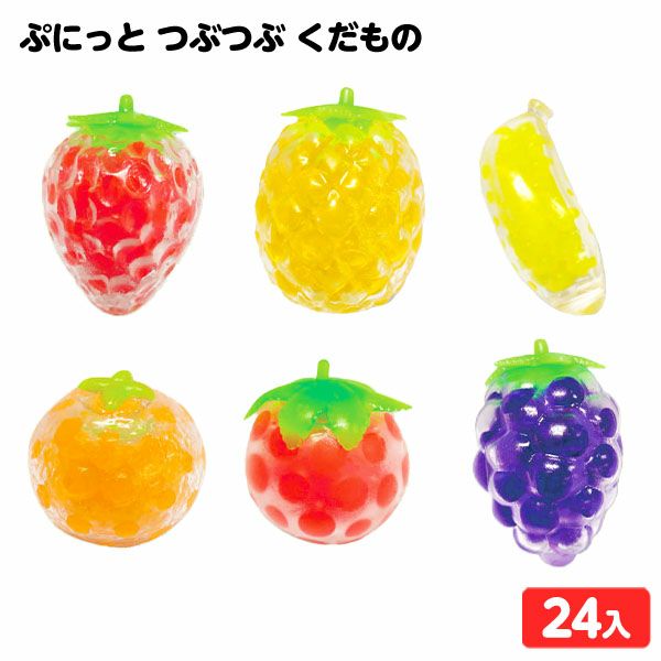 【24個入 クセになるつぶつぶ触感!】ぎゅっと握るとぷちゅぷちゅ触感がクセになる、かわいいフルーツ型スクイーズ!