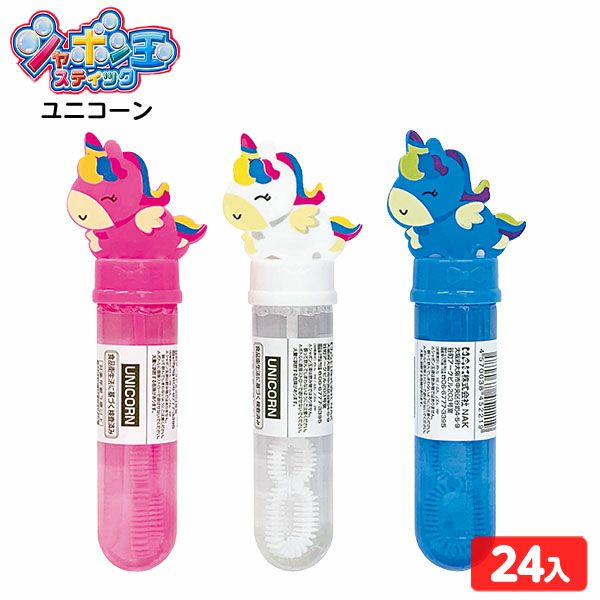 【24個入り!3色アソート】かわいいユニコーンデザインのしゃぼん玉スティックが登場!