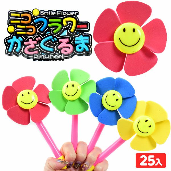 スマイルマークがついた、カワイイニコニコフラワーかざぐるまだよ♪
