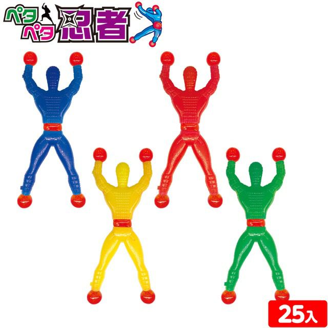 くっつき忍者の達人技!ブンッと窓やすべすべした壁などに向かって投げつけると、回転しながらペタペタ下降するぺたぺた忍者です。