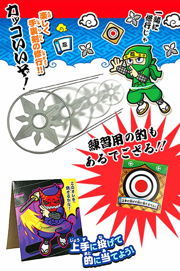他の画像を見る 1個あたり42円(46.2円税込)x25個入=1050円(1155円税込)的を狙って手裏剣を投げよう! 忍ニン 手裏剣あそび 25個入 { 景品玩具 手裏剣 忍者 手裏剣遊び }{ 景品 おもちゃ オモチャ 玩具 子供会 くじ引き 縁日 露店 屋台 おまけ 問屋 お子様ランチ 幼稚園 保育園 パーティー イベント 人気 プレゼント 配布 販促 }246[25C22] メーカー希望小売価格 オープン価格 のところ 当店特別価格 ¥ 1,155 税込 カートに入れる お気に入りに登録する