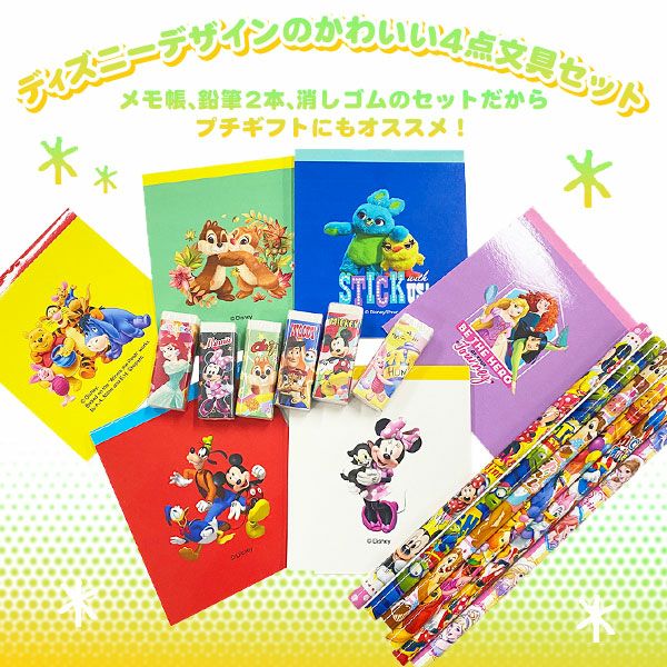 他の画像を見る 単価52円(57.2円税込)x25個入=1300円(1430円税込)プチギフトや景品用に人気! ディズニー カラフル 4点文具セット 25個入 { 景品玩具 鉛筆 ノート 消しゴム プチギフト }{ 景品 おもちゃ 玩具 子供 子供会 お祭り くじ引き 縁日 お子様ランチ 幼稚園 保育園 夏祭り パーティー イベント プレゼント 配布 販促 }258[24E15] メーカー希望小売価格 オープン価格 のところ 当店特別価格 ¥ 1,430 税込 カートに入れる お気に入りに登録する
