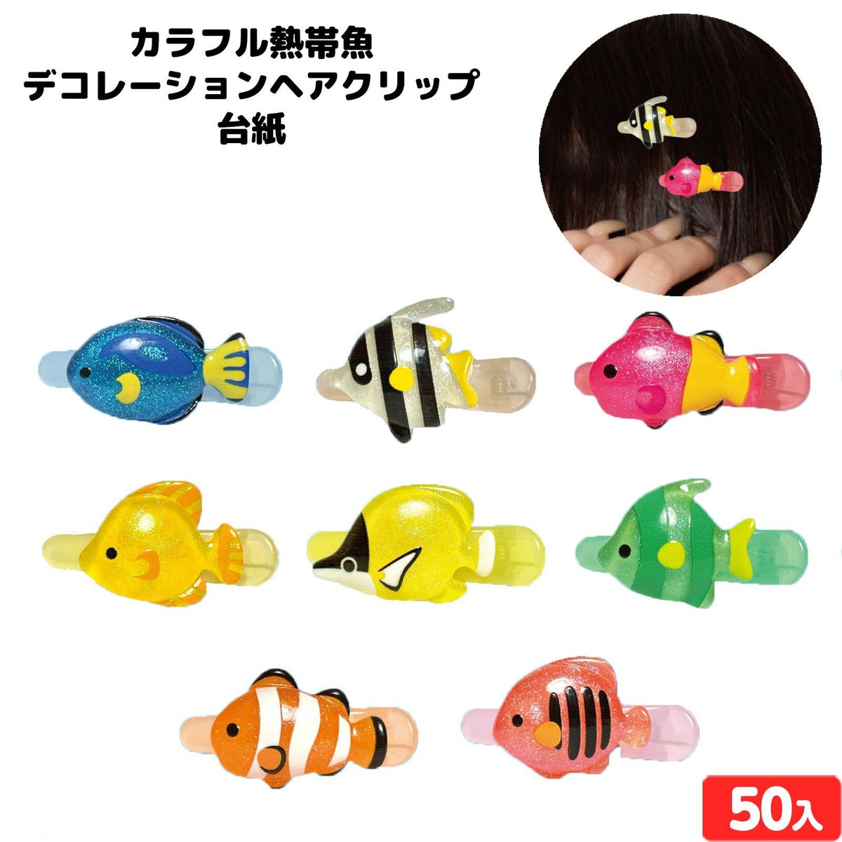 カラフル 熱帯魚 デコレーション ヘアクリップ 台紙 50個入