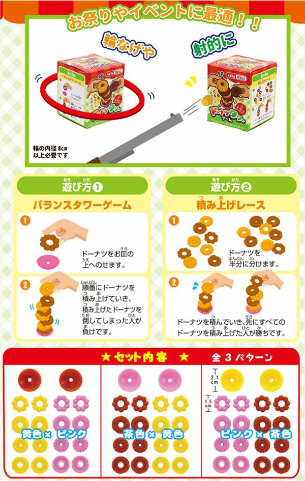 他の画像を見る 1個あたり47円(51.7円税込)x50個入=2350円(2585円税込)ハラハラ!ドキドキ!!何個ドーナツを積めるかな? ドーナツ タワーゲーム 50個入 { 景品玩具 積み上げ ブロック ハラハラドキドキ バランスゲーム }{ 景品 おもちゃ 詰め合わせ お祭り 縁日 子供 子供会 お子様ランチ 大量 まとめ買い 保育園 幼稚園 }246[25C22] メーカー希望小売価格 オープン価格 のところ 当店特別価格 ¥ 2,585 税込 カートに入れる お気に入りに登録する