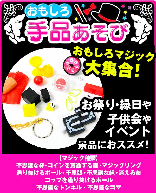 他の画像を見る 1個装あたり33円(36.3円税込)x50個装入=1650円(1815円税込)いろんなマジックが楽しめるおもちゃ おもしろ 手品あそび 50個装入 { 景品玩具 マジック 手品 ジョーク グッズ おもしろい }{ 景品 おもちゃ お祭り 縁日 問屋 子供 子供会 祭 お子様ランチ 保育園 幼稚園 パーティー イベント 配布 }234[25E27] メーカー希望小売価格 オープン価格 のところ 当店特別価格 ¥ 1,815 税込 在庫切れ 再入荷お知らせ お気に入りに登録する