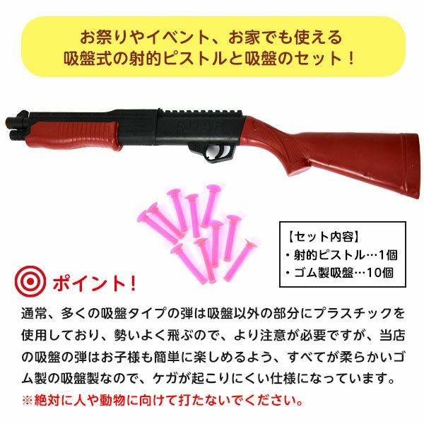 他の画像を見る 射的気分を気軽に楽しめる!!安心・安全な吸盤タイプ 射的銃 吸盤タイプ 弾10個付 { 景品玩具 射的 吸盤 ゴム 射的セット }{ 抽選用品 子供会 景品 お祭り くじ引き 縁日 露店 屋台 あてくじ アテクジ クジ くじ くじびき 当てくじ 当てクジ }[26B09] メーカー希望小売価格 オープン価格 のところ 当店特別価格 ¥ 235 税込 在庫切れ 再入荷お知らせ お気に入りに登録する
