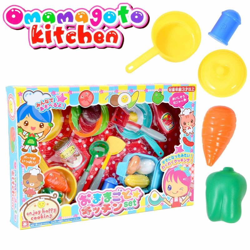 料理ごっこ遊びを楽しめるおままごとセット食材や調理器具などいろいろ入っているので、料理から盛り付けまでたっぷり楽しめます。