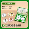 丸型カードは手に取りやすく、ざっと集めてさっと片づけられます。大人と遊びながら時計の読み方や生活習慣、感情表現が身につきます。