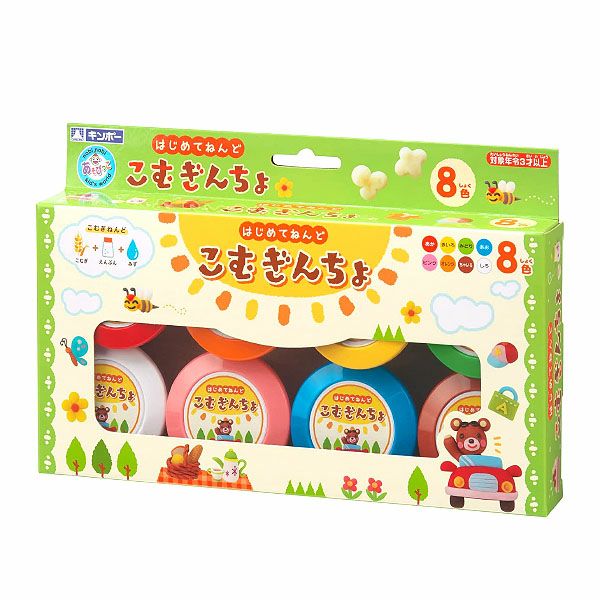 安全素材でできているから安心して使えます。発色がよく、使いやすい8色カラー。小麦・水・塩分が原料の安全ねんどです。