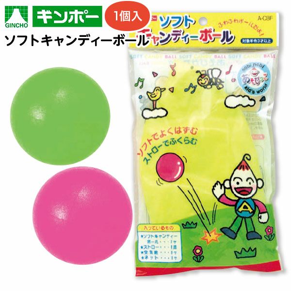 ストローで膨らませる、ソフトでよくはずむボールです。