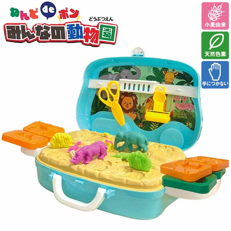 キミだけの動物園を作ろう!動物の型に粘土をつめて色んな動物を作ったり、8色のねんどを混ぜてオリジナルカラーの作品を作れる、小麦ねんど遊びキットです。