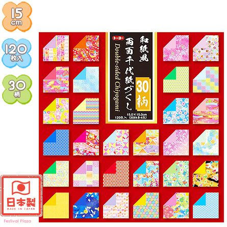 30柄の和柄の千代紙。両面に色がついています。保存に便利なケースにセットされています。