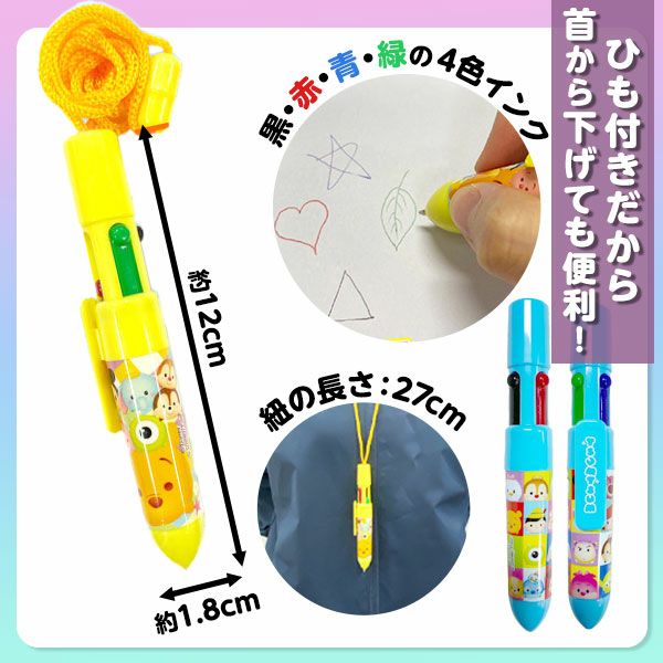 ディズニー かわいい ひも付 4色ボールペン 12個装入