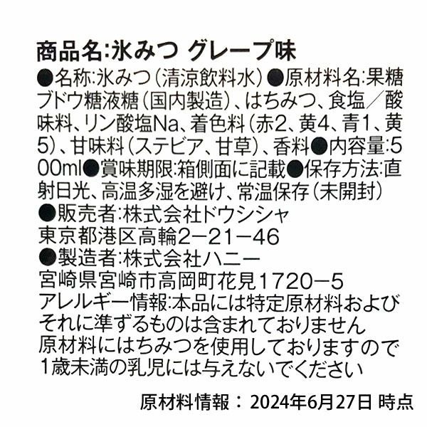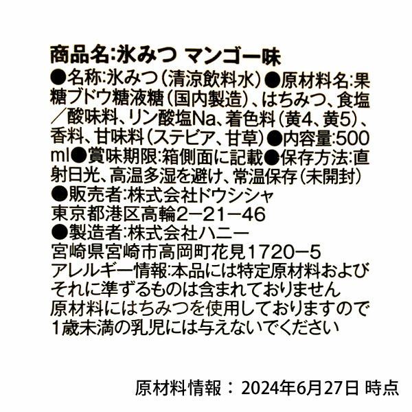 他の画像を見る 南国感たっぷり☆ 果汁30%の自然なシロップ ハニー 氷みつ 南のパラダイス 1000ml 全8種類 { かき氷シロップ かき氷みつ 氷みつ フラッペ カキ氷 シロップ 業務用 家庭用 1リットル 1L }{ 子供会 お祭り 夏祭り 縁日 イベント 幼稚園 屋台 学園祭 文化祭 納涼祭 夕涼み会 }[25F26][dmo]{即日出荷 配送区分D} メーカー希望小売価格 オープン価格 のところ 当店特別価格 ¥ 850 税込 カートに入れる お気に入りに登録する