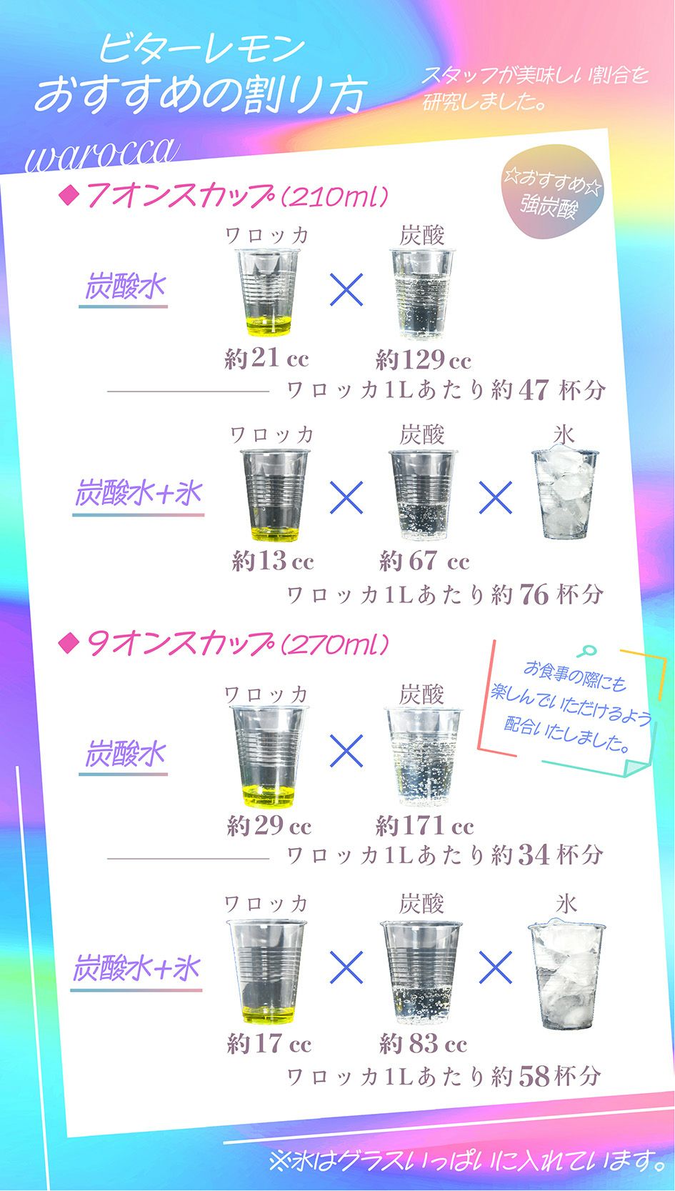 他の画像を見る お取寄品:4~7営業日以内に発送を目標としております。飲みものに割ったり、夏は『オトナかき氷』でオシャレに演出♪ ハニー ワロッカ ノンアルシロップ ビターレモン 1L { warocca ノンアルコール ベースシロップ レモン }{ ドリンク 飲料 シロップ 希釈 かき氷 カキ氷 業務用 イベント お祭り 縁日 アウトドア キャンプ 海 ビーチ 川 }[25G11][dmo] メーカー希望小売価格 オープン価格 のところ 当店特別価格 ¥ 1,382 税込 カートに入れる お気に入りに登録する