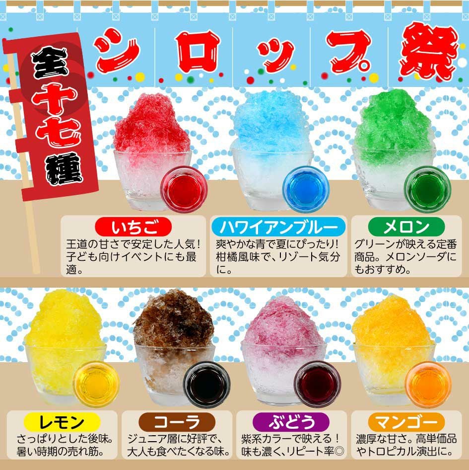 他の画像を見る 送料無料!!全31種類からお好きな組み合わせで選べる! 【選べる】【6本セット】 かき氷 シロップ 高級氷みつ Aタイプ 1.8リットル { ハニー 氷みつ 縁日 お祭り イベント 業務用 まとめ買い 1800ml }{ 子供会 景品 夏祭り 幼稚園 保育園 }[25G19][dmo] 送料無料(※沖縄・離島・一部地域は送料要){即日出荷 配送区分A} メーカー希望小売価格 オープン価格 のところ 当店特別価格 ¥ 5,279 税込 詳細を見る お気に入りに登録する