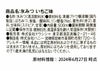 | 個包装への表示有無 | 賞味期限・・・○ アレルギー表示7品目・・・× 原材料・・・○