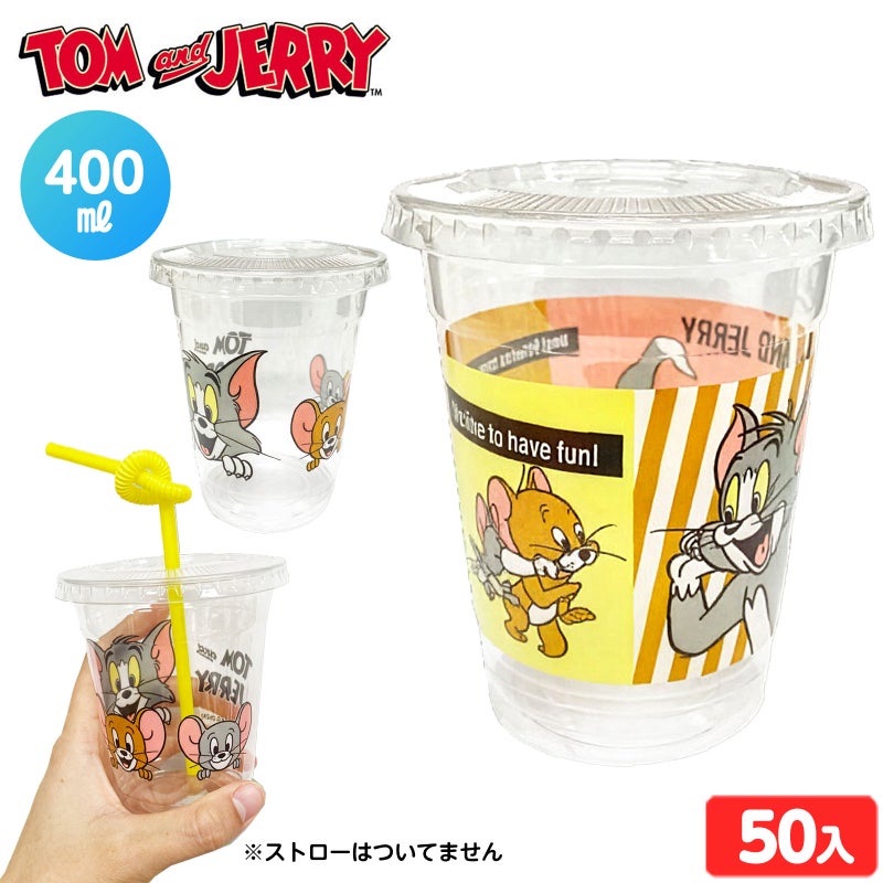5. トム&ジェリー PETカップ フタ付 約400ml 50個入 { 食品資材 ペットカップ トム&ジェリー }{ 食品容器 使い捨て プラスチック コップ ドリンクコップ コップ プラスチックカップ ドリンクカップ }258[26D21][dmo]