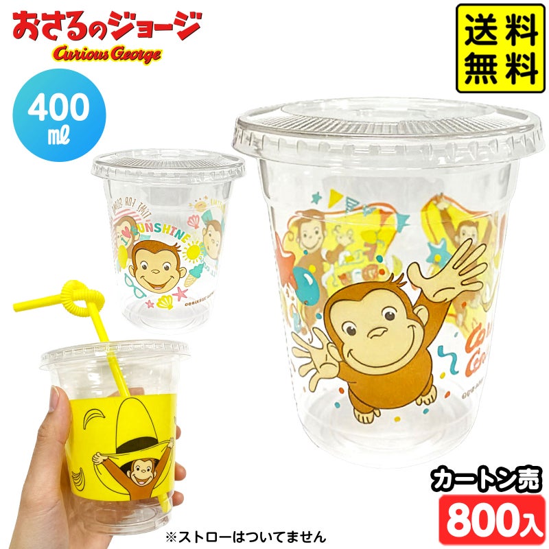 5. カートン販売/おさるのジョージ PETカップ フタ付 約400ml 800個入 { 食品資材 ペットカップ おさるのジョージ }{ 食品容器 使い捨て プラスチック コップ ドリンク コップ プラスチックカップ カップ }258[26D21][dmo] 送料無料(※沖縄県は送料要)