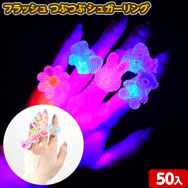 とろけるガーリーなキュートゆびわスイッチを入れるとクリアなつぶつぶ部分が赤、青交互にピカピカ光るかわいい指輪です。