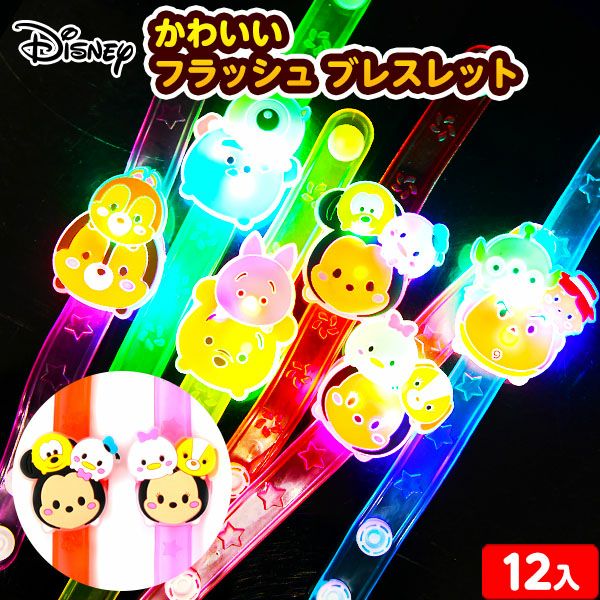 ディズニーキャラクターの光るブレスレットボタンを押すと、点滅して光ります。イベントやお祭りで人気の商品です。