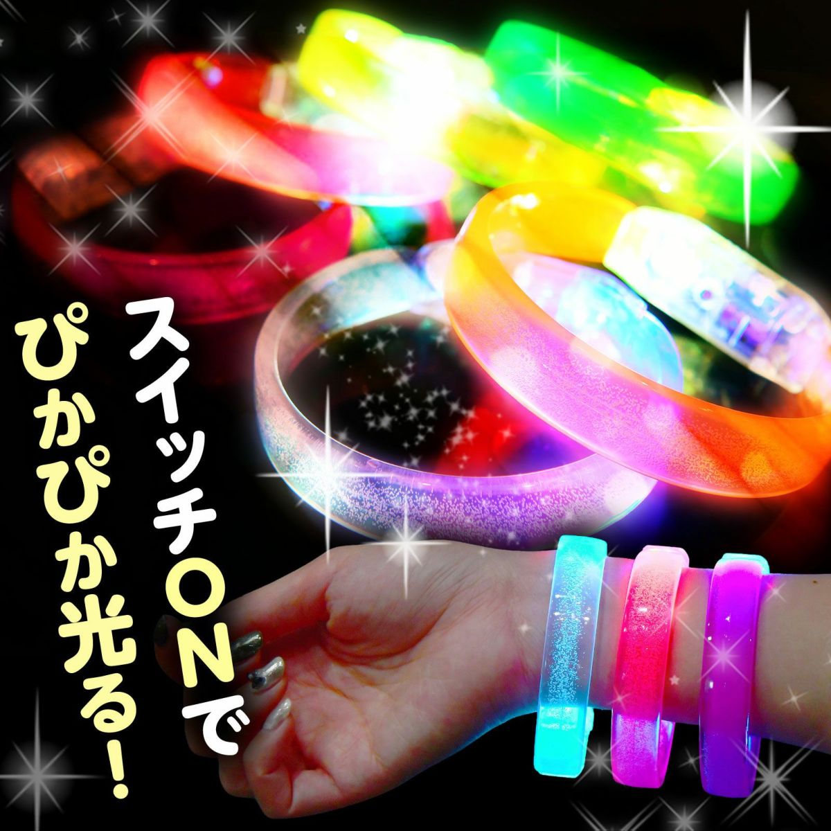 他の画像を見る 単価80円(88円税込)x12入=960円(1056円税込)お祭りイベントの売切れ必須人気アイテム!光るおもちゃ ディズニーかわいい フラッシュ ブレスレット 12入 不良返品不可{ 光るおもちゃ 光る ぴかぴか ピカピカ }{ 景品 おもちゃ 玩具 子供 子供会 問屋 祭 夏祭り 縁日 露店 屋台 保育園 幼稚園 パーティー イベント お子様ランチ 配布 }258[24E15] メーカー希望小売価格 オープン価格 のところ 当店特別価格 ¥ 1,056 税込 カートに入れる お気に入りに登録する