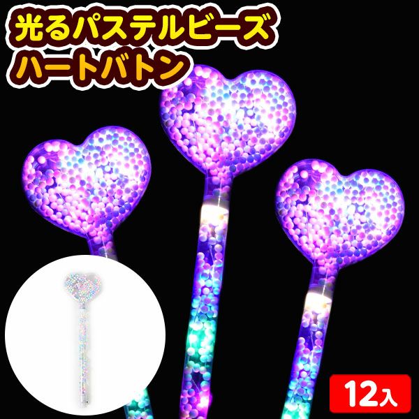 マジカルドリーミーなゆめかわスティック日中はカラフル、夜は目立ってかわいいパステルビーズ入りのハート型バトンです。