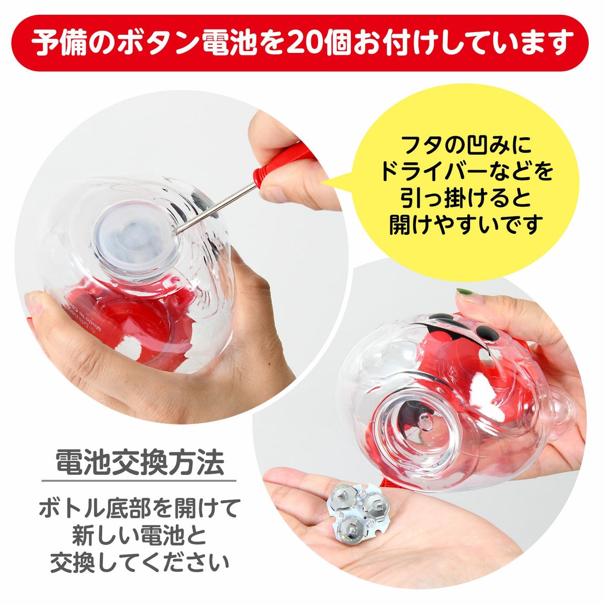 他の画像を見る 送料無料!!06/28 00:00まで当店通常価格から約55%OFF!!1個装あたり約68.2円(75円税込)x100個装入=6818円(7500円税込) 100個セット 【特価品】 カートン販売/光る ミニー フェイスボトル 約420ml 光るおもちゃ 不良返品不可{ ひかるおもちゃ 光るオモチャ 大量 セット 祭り 問屋 屋台 光るジュース 光るボトル }{ セール 夏祭り }[25G17][dmo] 送料無料(※沖縄県は送料要) 当店通常価格 ¥ 16,500 のところ 当店特別価格 ¥ 7,500 税込 販売期間 2025/06/28 0:00 〜 2026/06/28 0:00 在庫切れ 再入荷お知らせ お気に入りに登録する