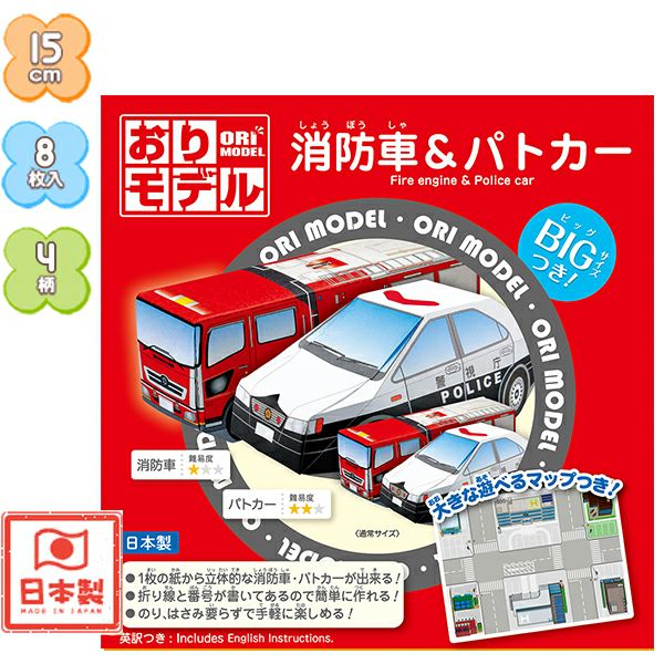 立体的な新幹線や車が作れる【おりモデル】かっこいい消防車やパトカーが作れます。