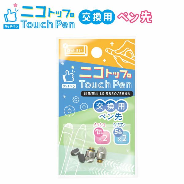 ニコトップタッチペン(LS-5850・5866)の交換用ペン先ペン先約7mm(メッシュ素材)と約5mm(シリコン素材)の2サイズ各2個入です。