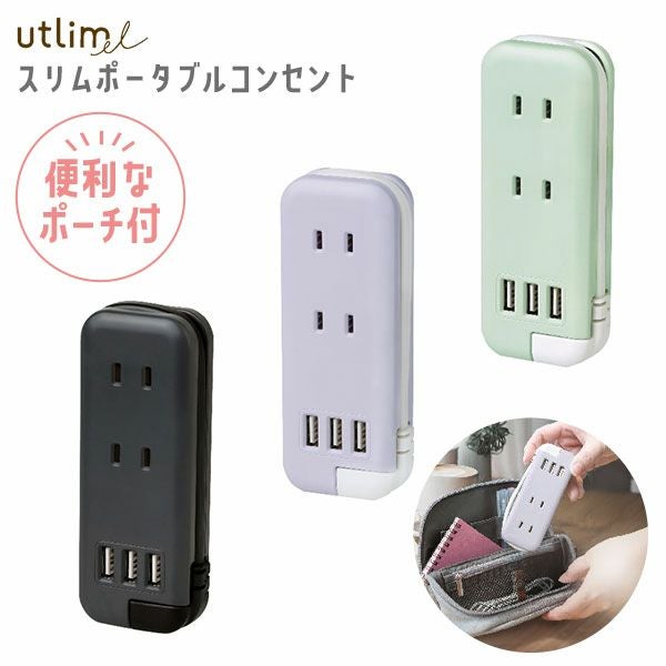 コンセント ポータブル 充電式 USB USB電源 屋外 卓上 おしゃれ 4970116053039 グレー UL-6345-GL 4970116053046 バイオレット UL-6345-V 4970116053053 グリーン UL-6345-G 延長コード アッシュ インテリア コンパクト 持ち運び オフィス用品 事務用品 日用品 ステーショナリー 業務用 記念品 中学生 高校生 テレワーク