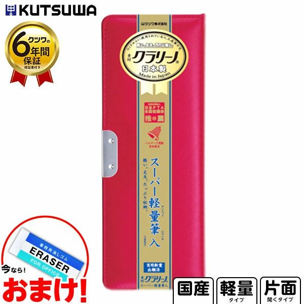 6. クツワ クラリーノ 筆箱 片面 スーパー軽量筆入 レッド CX128 { 新入学文具 新入学文具 新入学 入学準備 新学期 文具 KUTSUWA }{ 筆入れ 箱型 小学生 男の子 女の子 子供用 文具 学用品 入学グッズ 進級 記念品 シンプル }400[25C31][omkAA-00074omk]
