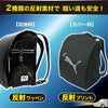 ・本体ロゴ部分は暗い道でも安全な反射プリント、収納袋にも反射ワッペン付